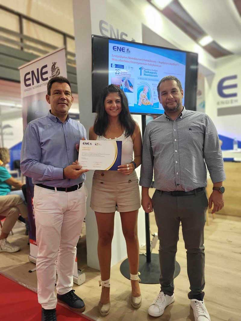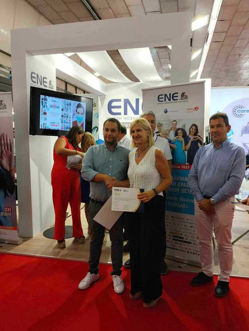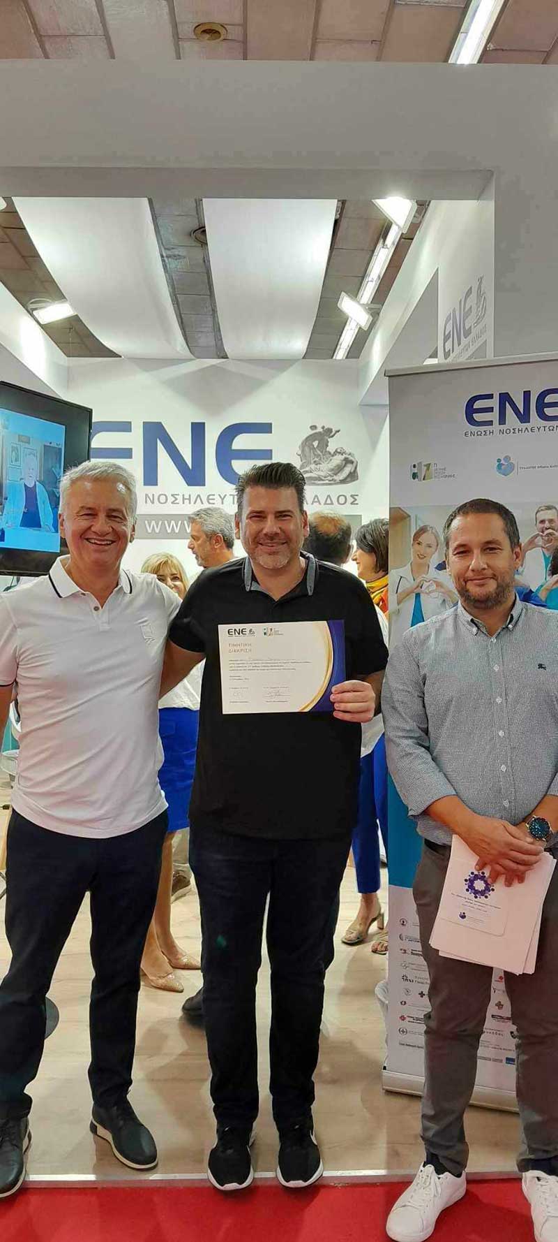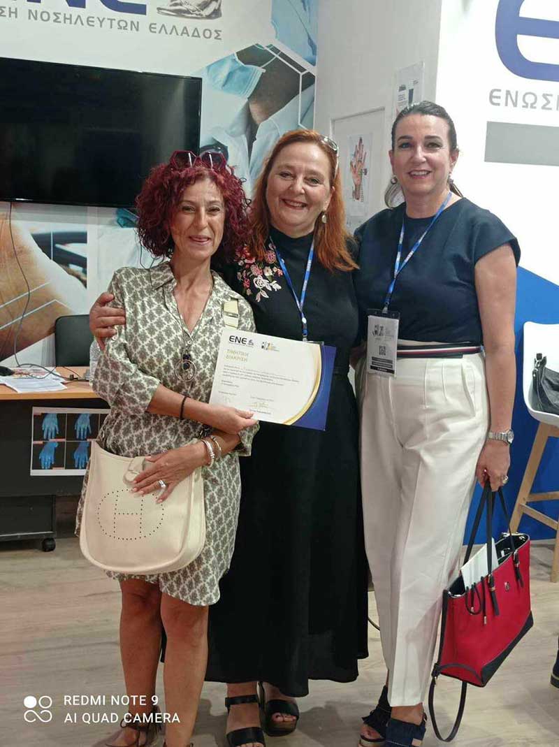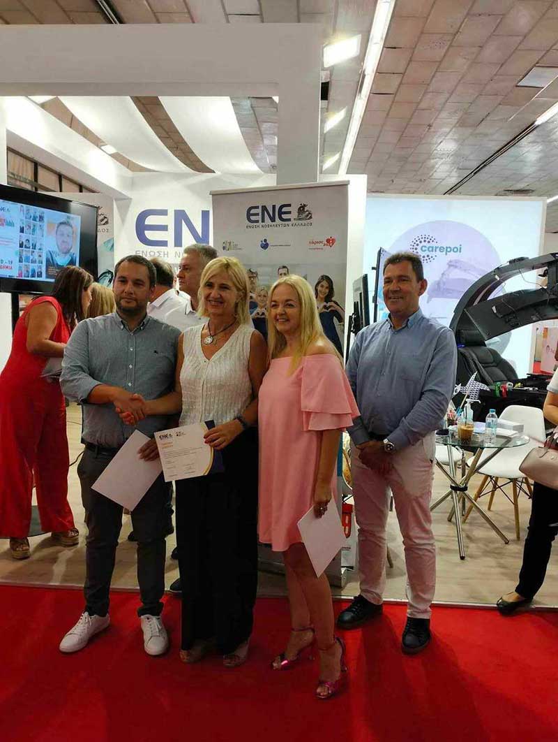 Το Διοικητικό Συμβούλιο της Ε.Ν.Ε. απονείμει τα εύσημα στις Διευθύνσεις Νοσηλευτικών Υπηρεσιών και σε όλους τους Νοσηλευτές για την υποδειγματική συνεργασία και τη συμμετοχή τους στο πρόγραμμα καθ’ όλη τη διάρκεια της Έκθεσης, γεγονός το οποίο ανέδειξε τον επαγγελματισμό και το επιστημονικό τους υπόβαθρο και συνάμα τον πολυδιάστατο ρόλο της Νοσηλευτικής Επιστήμης στο κοινωνικό σύνολο.