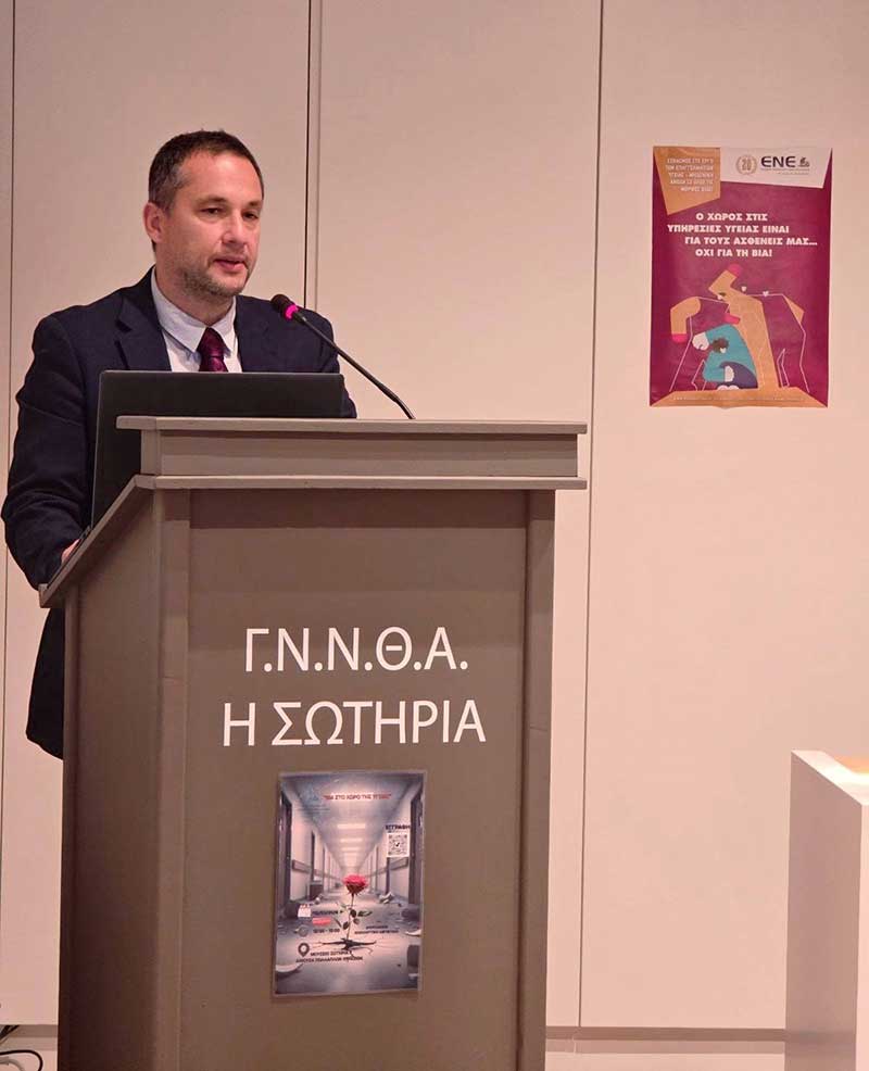 Στο πλαίσιο της Πανευρωπαϊκής Ημέρας κατά της Βίας προς τους επαγγελματίες υγείας, η Διεύθυνση Νοσηλευτικής Υπηρεσίας του Γ.Ν.Ν.Θ.Α. «Η ΣΩΤΗΡΙΑ» διοργάνωσε στην αίθουσα πολλαπλών χρήσεων του Μουσείου ΣΩΤΗΡΙΑ, την επιστημονική εκδήλωση με θέμα: «Βία στο χώρο της Υγείας», συμμετέχοντας παράλληλα και στην 3η Πανελλαδική Ενημερωτική Εκστρατεία της Ε.Ν.Ε.