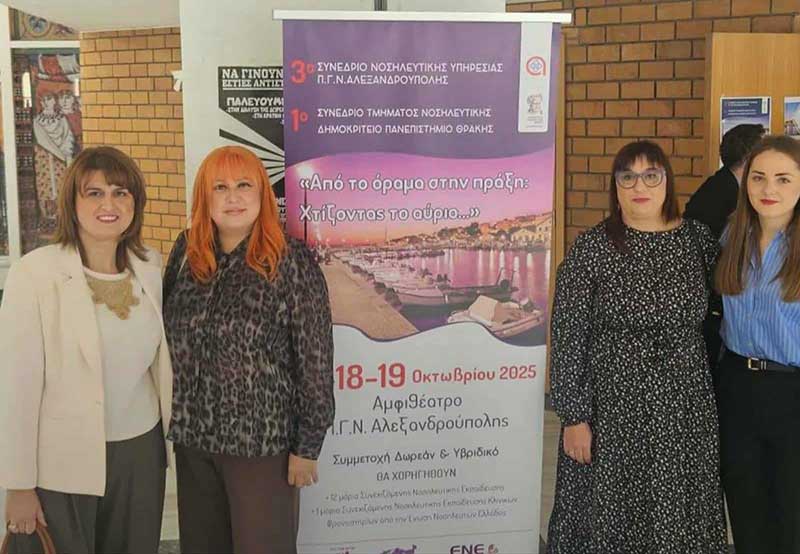 Από τις 17 έως τις 19 Οκτωβρίου 2025 πραγματοποιήθηκε στο αμφιθέατρο του Π.Γ.Ν. Αλεξανδρούπολης, το 3ο Συνέδριο Νοσηλευτικής Υπηρεσίας Π.Γ.Ν. Αλεξανδρούπολης – 1ο Συνέδριο Τμήματος Νοσηλευτικής Δημοκρίτειο Πανεπιστήμιο Θράκης: «Από το όραμα στην πράξη: Χτίζοντας το αύριο…», το οποίο τελούσε υπό την αιγίδα της Ένωσης Νοσηλευτών Ελλάδος.
