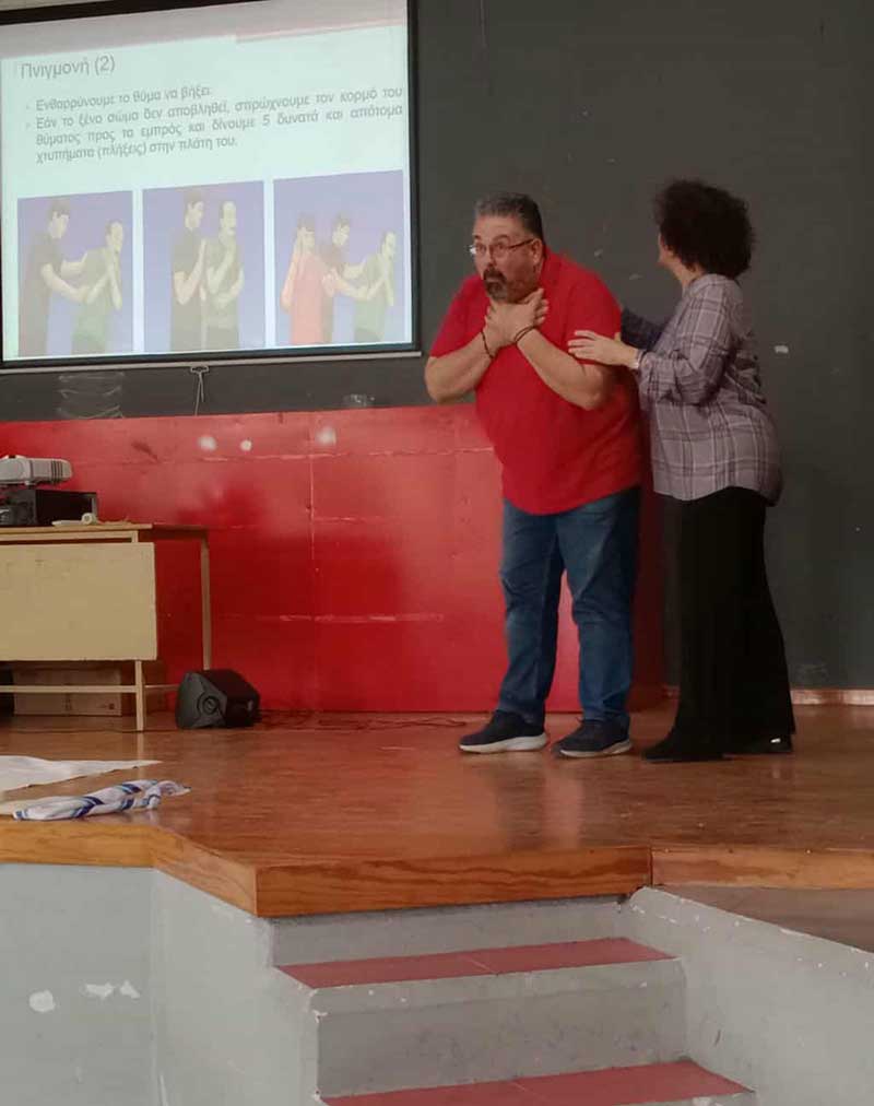 Οι συμμετέχοντες ενημερώθηκαν και εκπαιδεύτηκαν στην παροχή Πρώτων Βοηθειών, στην παροχή Καρδιοαναπνευστικής Αναζωογόνησης και στη χρήση του Αυτόματου Εξωτερικού Απινιδιστή, αποκτώντας τις απαραίτητες γνώσεις και δεξιότητες για να αντιμετωπίσουν επαρκώς, κρίσιμες για τη ζωή καταστάσεις.