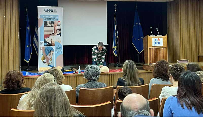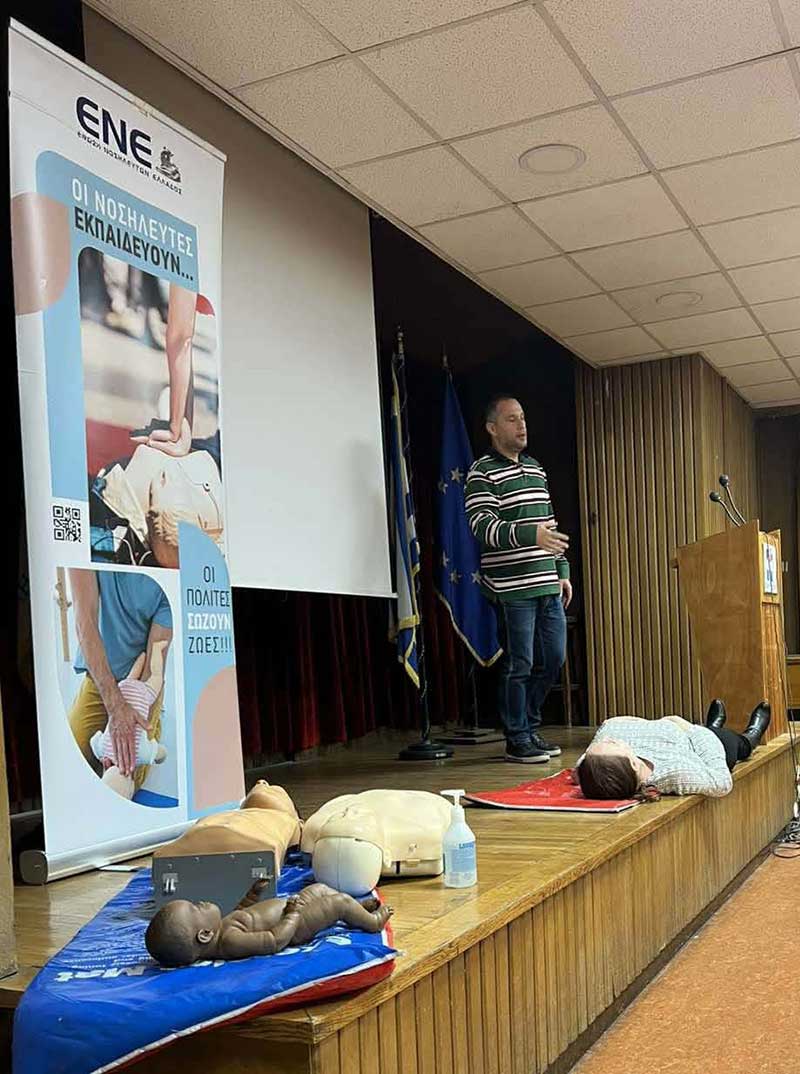Η Ένωση Νοσηλευτών Ελλάδος σε συνεργασία με το Γραφείο του Υφυπουργού Υγείας και τον Σύλλογο Εργαζομένων του Υπουργείου Υγείας υλοποίησαν το πανελλαδικό εθελοντικό Πρόγραμμα Αγωγής Υγείας μέσω του Σχολείου, της Οικογένειας, της Κοινότητας, με τίτλο: «Οι Νοσηλευτές εκπαιδεύουν… οι Πολίτες ΣΩΖΟΥΝ ζωές», για τα στελέχη του Υπουργείου Υγείας στις 15 και 18 Δεκεμβρίου 2025, στο αμφιθέατρο του Υπουργείου Υγείας.