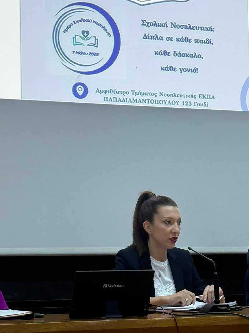 Τέλος υπογράμμισε την αναγκαιότητα να επαναπροσδιοριστεί η έννοια της νοσηλευτικής καριέρας, ενσωματώνοντας δυναμικά το ρόλο του σχολικού νοσηλευτή ως βασικό παράγοντα για την προαγωγή της υγείας και της ευημερίας των μαθητών.