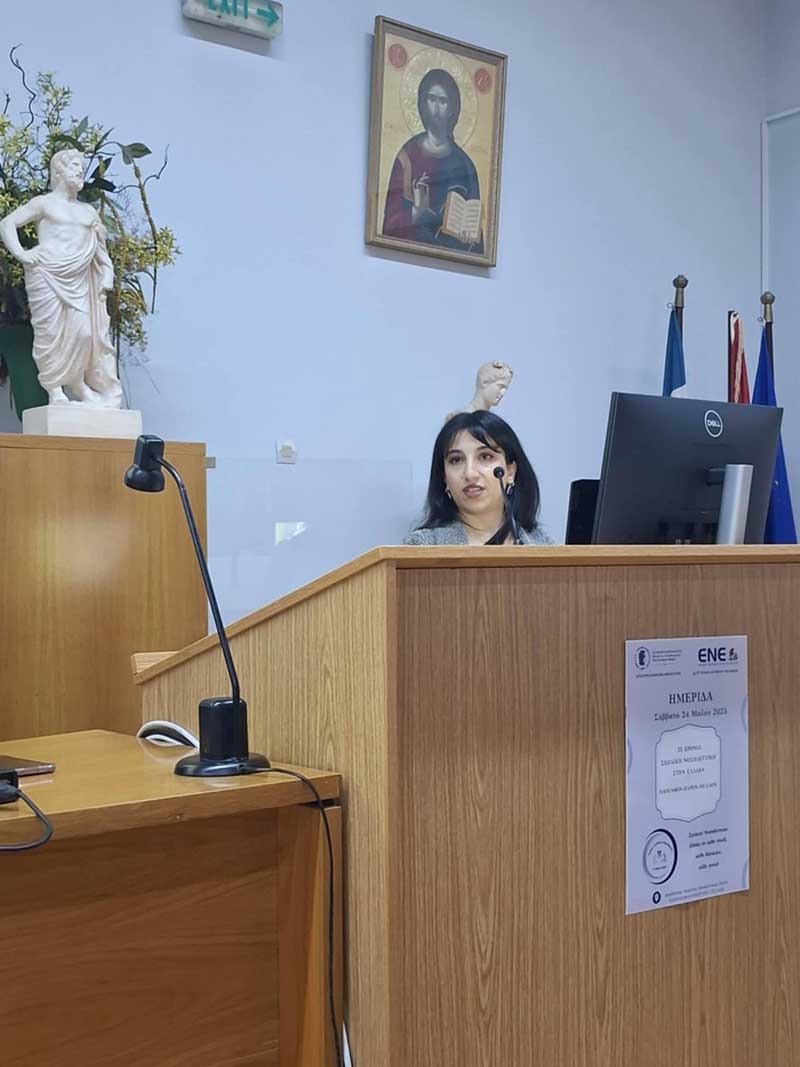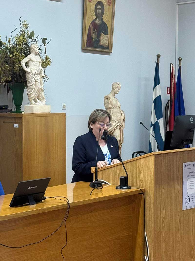 Η ομιλία της κυρίας Πρωτόπαππα Αθηνάς τόνισε την απόσταση μεταξύ θεωρητικής γνώσης και πρακτικής εφαρμογής, με ιδιαίτερη έμφαση στις προκλήσεις θεσμικής ανάπτυξης, ανάγκη για συνεκτικές πολιτικές και αξιοποίηση των ερευνητικών δεδομένων στη λήψη αποφάσεων και εφαρμογή καλών πρακτικών μέσω νοσηλευτικών πρωτοκόλλων.