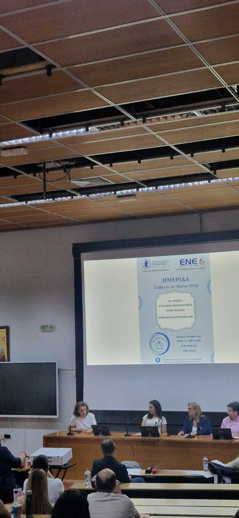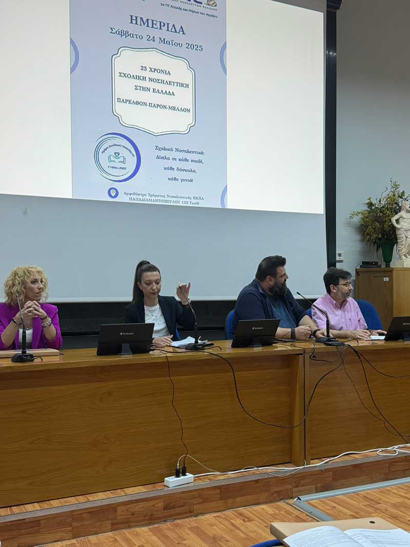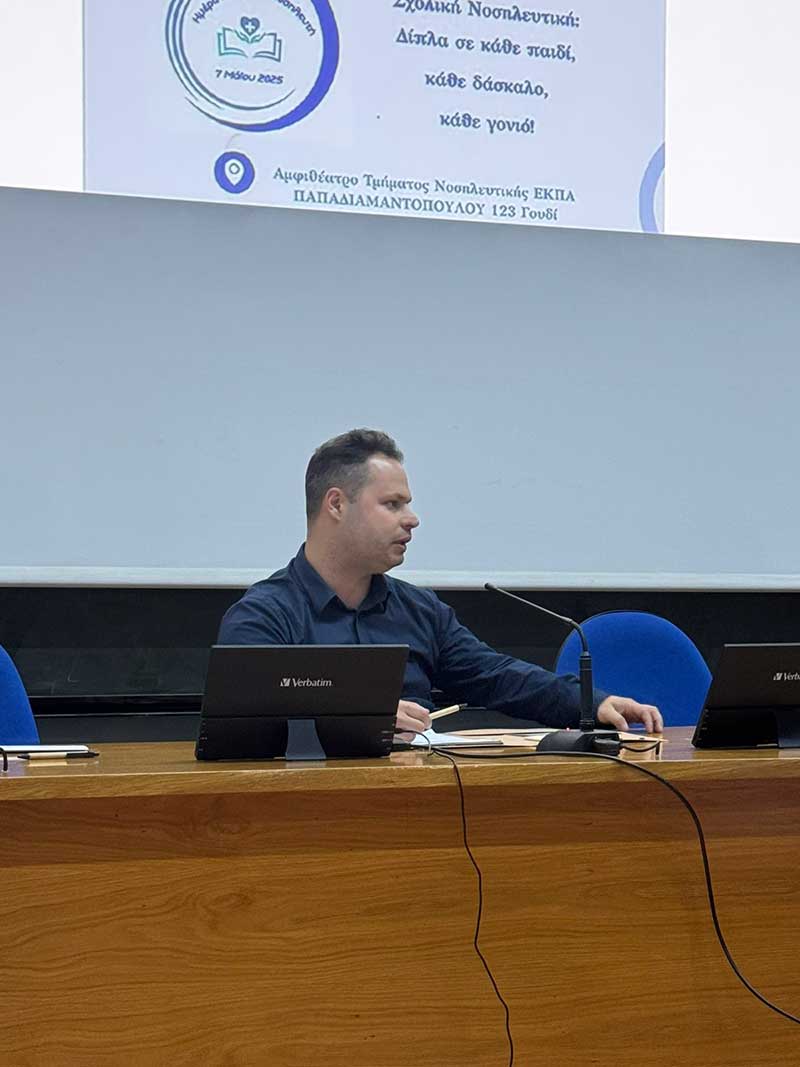 Το Σάββατο 24 Μαΐου 2025, στο Αμφιθέατρο του Τμήματος Νοσηλευτικής ΕΚΠΑ πραγματοποιήθηκε υβριδικά η Ημερίδα Σχολικής Νοσηλευτικής με θέμα: «25 Χρόνια Σχολική Νοσηλευτική στην Ελλάδα. Παρελθόν-Παρόν-Μέλλον», από το 1ο Περιφερειακό Τμήμα (ΠΤ) της Ένωσης Νοσηλευτών Ελλάδος (ΕΝΕ) σε συνεργασία με τη Μονάδα Σχολικής Νοσηλευτικής του Εργαστηρίου Κοινοτικής Νοσηλευτικής του ΕΚΠΑ και τον Επιστημονικό Τομέα Σχολικής Νοσηλευτικής της ΕΝΕ.