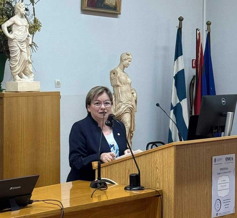 Η ομιλία της κυρίας Πρωτόπαππα Αθηνάς τόνισε την απόσταση μεταξύ θεωρητικής γνώσης και πρακτικής εφαρμογής, με ιδιαίτερη έμφαση στις προκλήσεις θεσμικής ανάπτυξης, ανάγκη για συνεκτικές πολιτικές και αξιοποίηση των ερευνητικών δεδομένων στη λήψη αποφάσεων και εφαρμογή καλών πρακτικών μέσω νοσηλευτικών πρωτοκόλλων.